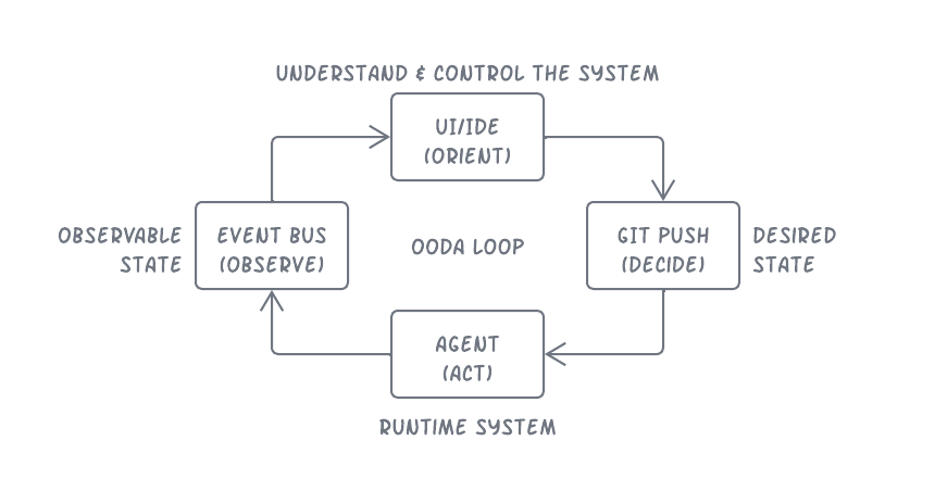 - Orient. Engineers understand the events through graphical user interface (UI) that aggrate events. They control the system by making changes to the code and configuration using an integrated development environment (IDE).